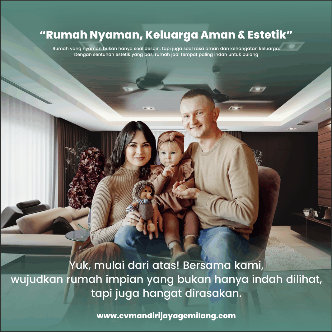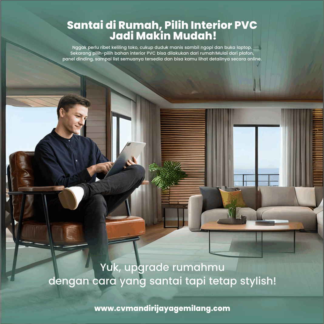 Selamat datang di CV. Mandiri Jaya Gemilang, mitra terpercaya dalam penyediaan Plafon PVC, kontraktor & suplier. Kami berkomitmen menghadirkan solusi interior berkualitas tinggi untuk hunian dan bangunan komersial Anda.